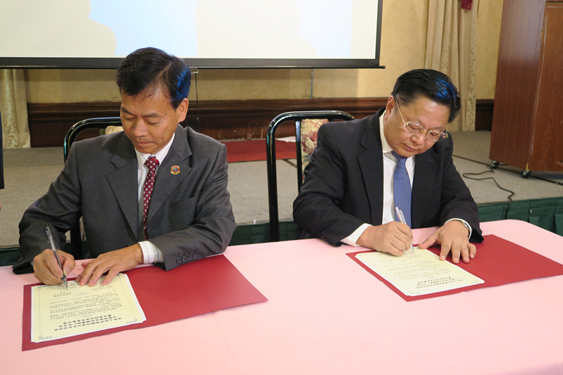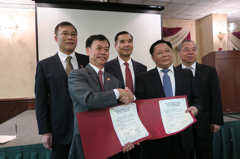 8月28日晚,北美河源同乡会、美国德州广东总会等侨团举办宴会欢迎访问团一行。会上,梁国华副主席与德州广东总会会长徐松煥代表签署了"建立友好合作关系"备忘录,以增进两地的了解和推动两地开展经贸、科技、旅游、文化、人员往来等领域多种形式的交流合作,促进双方共同繁荣发展。