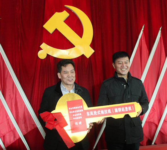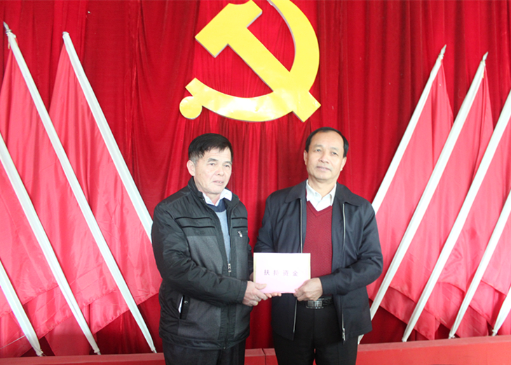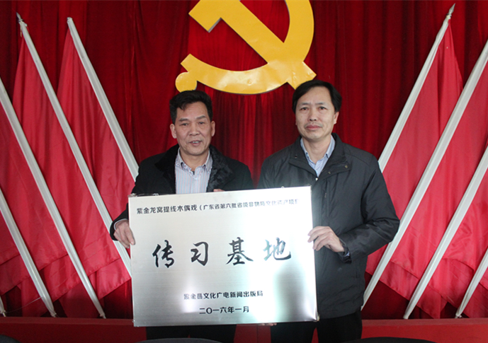 在总结会上,紫金县文广新局为村委会颁发了"龙窝提线木偶戏"传习基地牌匾,扶贫组向龙窝提线木偶剧团负责人赠送扶持基金、向宝洞村委会赠送春节慰问金、赠送生产发展长效项目(拖拉机),龙窝镇领导向四个帮扶单位赠送答谢牌匾。随后慰问组走访了2户家庭,为他们送上慰问品和节日的祝福。