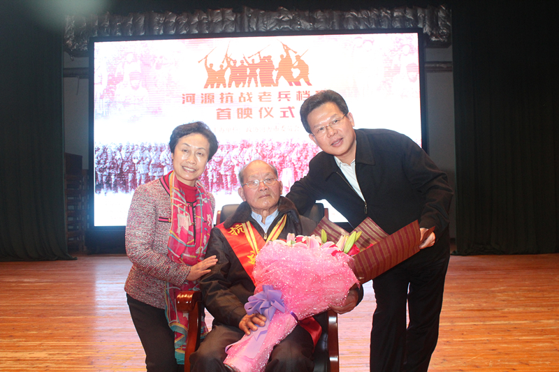 3月22日晚上,由市政协主办、河源抗战老兵志愿者团队承办的《河源抗战老兵档案》口述历史文史资料片在市会议中心首映。市委副书记、市长彭建文,市政协主席龚佐林,参加过多个抗日战争战役的老兵徐坤云及其他抗战老兵家属出席了首映仪式。